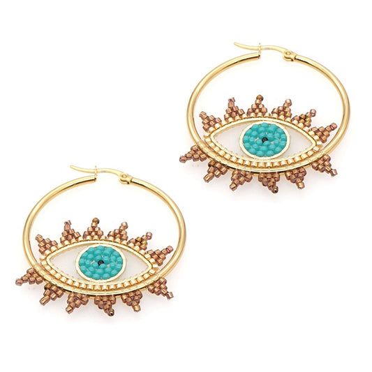 Evil Eye Stainless Steel Gold Hoop Earrings