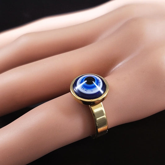 Evil Eye Stainless Steel Golden Ring