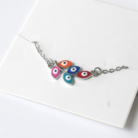 This evil eye choker necklace is crafted in sterling silver and features a colorful evil eye pendant. The colorful evil eye choker is perfect for adding a splash of color to any outfit and looks stunning when paired with other evil eye jewelry.