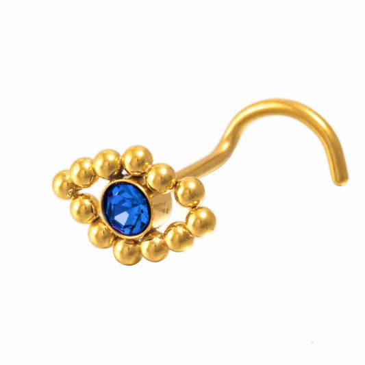 Evil Eye nose cuffs are usually made from silver, gold, or a combination of both. They can also be adorned with precious and semi-precious stones such as turquoise, lapis lazuli, and moonstone.