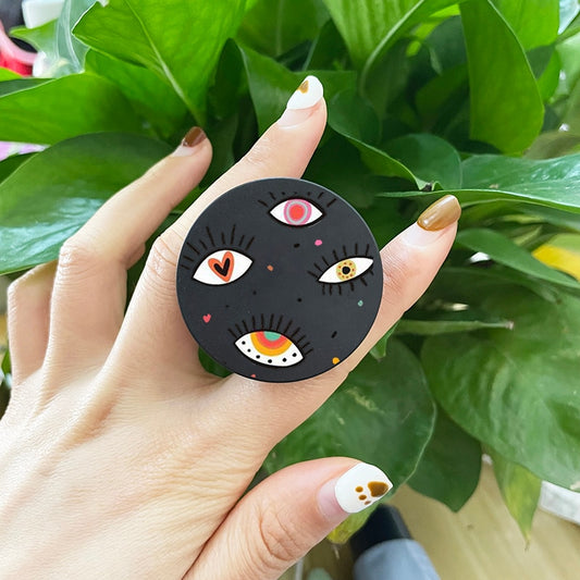 The Evil Eye PopSocket is a unique accessory for your phone or tablet that provides extra grip, stability, and style. It features a vibrant design with an evil eye symbol in the center, making it a great way to make a fashion statement while keeping your device secure.