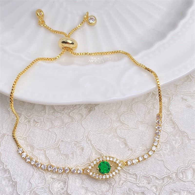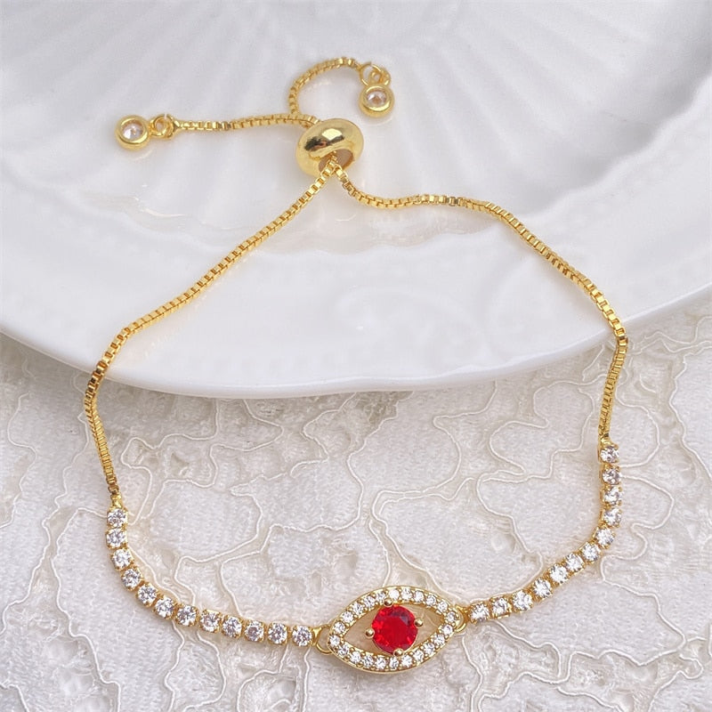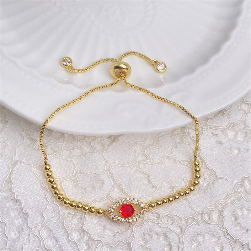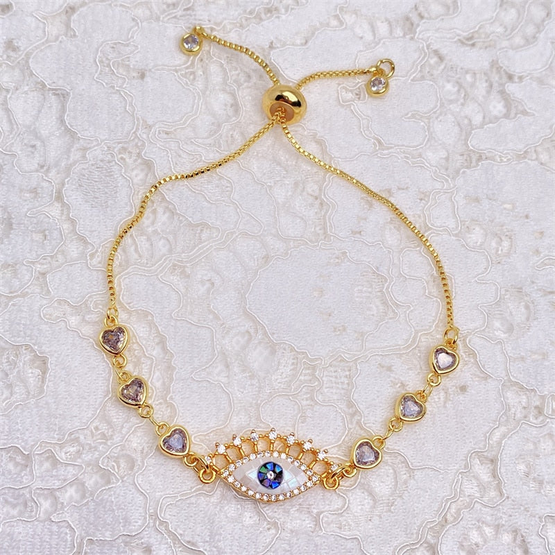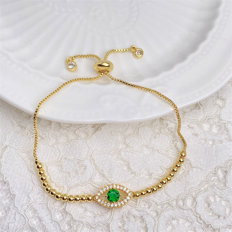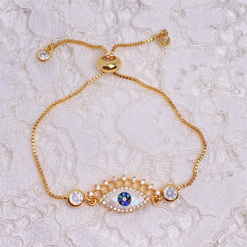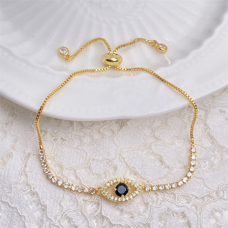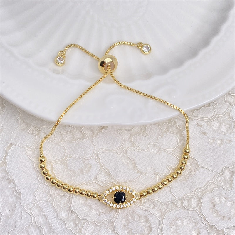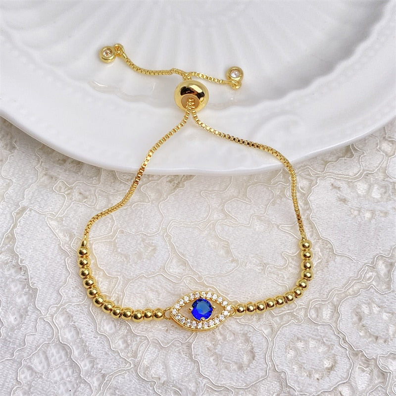 The Gold-Plated Evil Eye Charm Bracelet is an exquisite piece of jewelry that exudes elegance and sophistication. Crafted with precision and attention to detail, this bracelet features a stunning evil eye charm that is plated in gold, adding to its luxurious appeal.