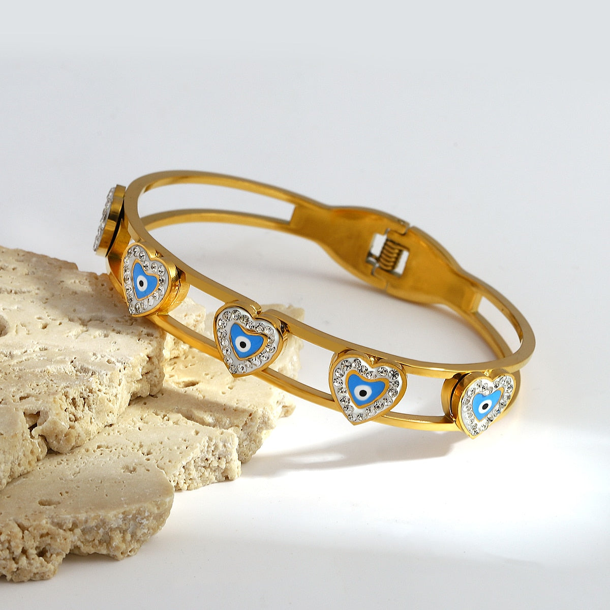 Protect yourself from negativity and envy with our Heart Shape Evil Eye Bracelet. Crafted with exquisite attention to detail, this stunning piece will not only add a touch of style to your wardrobe but also serve as a powerful talisman against bad luck and ill-wishing. With its elegant heart shape and mesmerizing evil eye design, this bracelet is the perfect accessory for any woman who wants to feel confident, powerful, and protected from the evil eye.